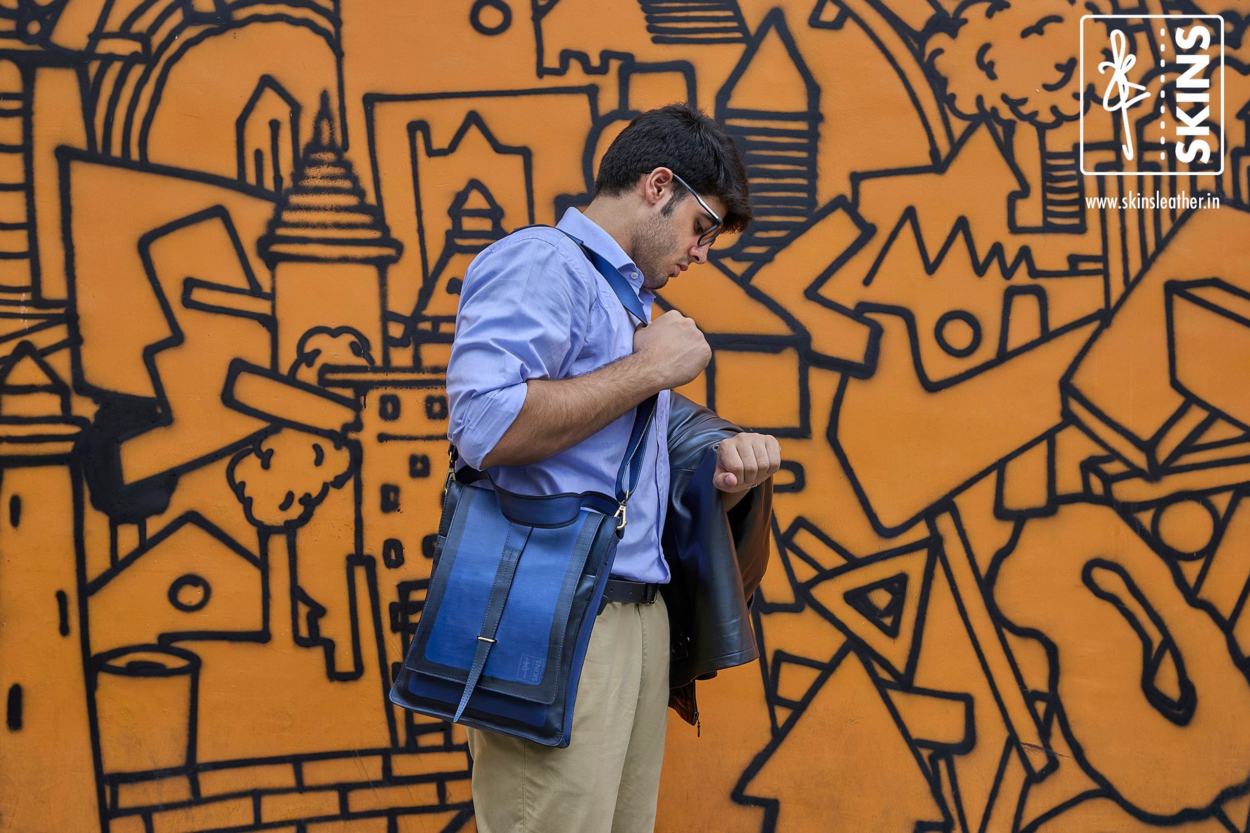 Nestled in the heart of Agra, known for the Taj Mahal and shoe making, SKINS studio is the hub of hand crafted leather artistry. Udit Kulshrestha's deep passion for leather craftsmanship is evident in every carefully handcrafted piece we create, showcasing his dedication to exquisite detailing and his love for colours.