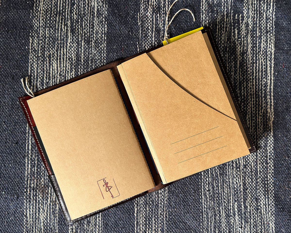 Elevate your journaling ritual with the Scriptura Kraft Folder, an artisanal insert crafted to accompany the Nyinu A5 & Khonsa A6 Leather Portfolio Journal by SKINS by Udit Kulshrestha. Designed in premium 300gsm kraft paper, this elegant folder is more than just an accessory—it is a refined keeper of thoughts, notes, receipts, and memories.